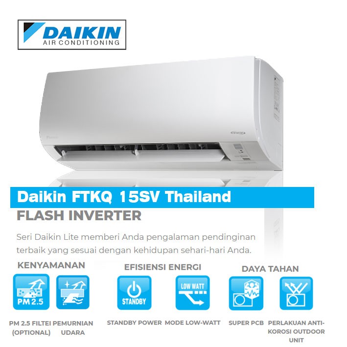 Ac daikin star inverter memiliki mode low watt untuk model 1 2 pk sampai 1 5pk dimana apabila menggunakan ac 1 5pk tipe ini sekalipun rumah dengan daya listrik 1300watt dijamin tidak bakal jebret listriknya karena ac nya bisa mengurangi konsumsi listrik sampai maksimal 200 watt stabil mode low watt level 2 di ac 1 2pk nya apabila ada. Outdoor ac daikin 1 pk rc25nv14 thailand r32 baru segel kartu garansi. Daikin ac split 1 pk smile inverter ftkc25qvm4. Spesifikasi lengkap serta harga terbaru di tangerang jakarta.