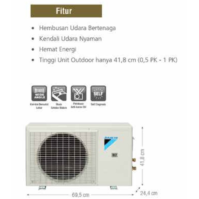 Ac daikin 1 pk standard thailand. Ac daikin standard thailand ini dibuat oleh pabrikan daikin yang berada di negara tersebut. Kini air conditioner ac menjadi barang elektronik yang sudah banyak dipasang di beberapa bangunan seperti kantor sekolah restaurant rumah dan lain lain. Power airflow sirip menyesuaikan ventilasi membuka ke posisi optimal untuk penyebaran aliran udara. Tetap dibuat di bawah pengawasan pabrik pusatnya di jepang membuat kualitas ac daikin thailand tetap terjaga dan tidak bisa diragukan.