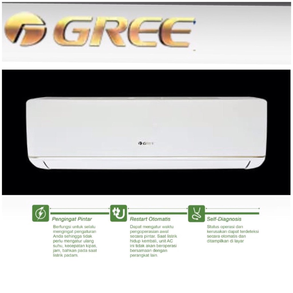 Ac gree 1 5 pk standard. Gree ac 0 5pk gwc 05moo3 standard 1 2 pk r32 free bracket rp 2 499 000. Spesifikasi gree gwc 05moo ac split 1 2 pk standard produk sku gwc 05moo warna putih daya listrik watt 500 watt dimensi l x w x h 72 x 27 x 19 cm berat 8 kg garansi produk 3 tahun sparepart 5 tahun lanjutkan membaca. Gree fs gwc 05moo3 standard series ac split 0 5 pk unit only rp 2 350 000. Belanja ac gree split standard gwc 12moo 1 5 pk garansi resmi harga pabrik.