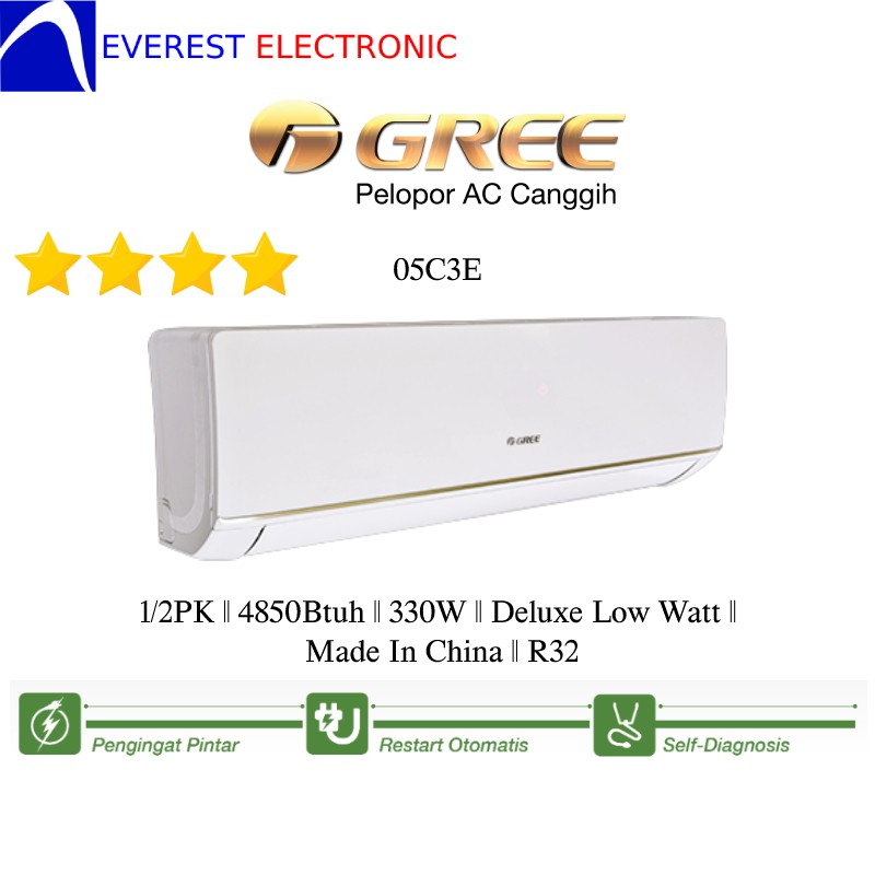 Untuk biaya pemasangan material pipa kabel stop kontak dll complete hingga ac on dikenakan biaya tambahan dibayarkan saat barang tiba dilokasi sebagai berikut. Deskripsi ac gree split wall 1 2 pk low watt gwc 05c3e. Cari produk air conditioner lainnya di tokopedia. Jual ac gree deluxe low watt gwc 05c3e 0 5pk dengan harga rp3 049 000 dari toko online rinz olshop jakarta barat.
