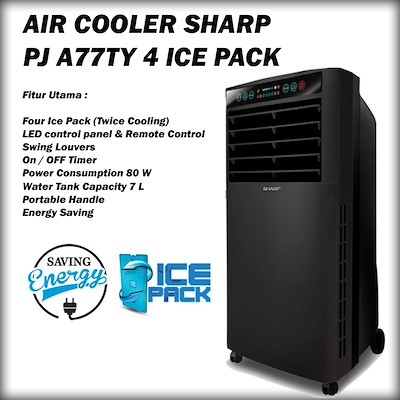 Four ice pack twice cooling led control panel remote control swing louvers on off timer power consumption 80 w water tank capacity 7 l portable handle energy saving pj a77ty b sharp indonesia lompat ke isi utama.