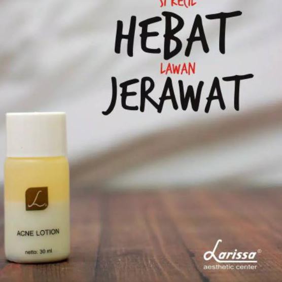 Acne lotion yang mengandung sulfur untuk mengurangi timbulnya jerawat dan mengontrol kadar minyak berlebih di wajah sehingga tidak mudah timbul jerawat. Larissa aesthetic center merupakan klinik kecantikan estetika pratama yang mengusung konsep natural ingredient with high technology yaitu sistem perawatan wajah perawatan rambut hingga perawatan tubuh dengan memakai bahan alami yang disinergikan penggunaan teknologi modern dengan harga terjangkau. Larissa mempunyai beberapa treatment yang dapat membantu untuk mengangkat sel kulit mati serta menyembuhkan jerawat antara lain seperti. Klik disini untuk pre order acne lotion.