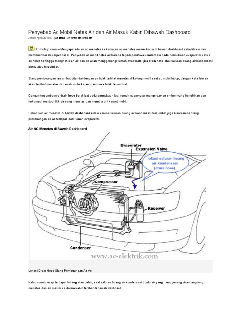 Penyebab ac mobil netes air dan air masuk kabin dibawah dashboard. Ac mobil diy otomotif otomotif. Beberapa penyebab tersumbat saluran buang air kondensasi. Posisi selang pembuangan ini biasanya ada di bawah kabin di ruang mesin sebelah kiri kalau dari posisi kemudi.
