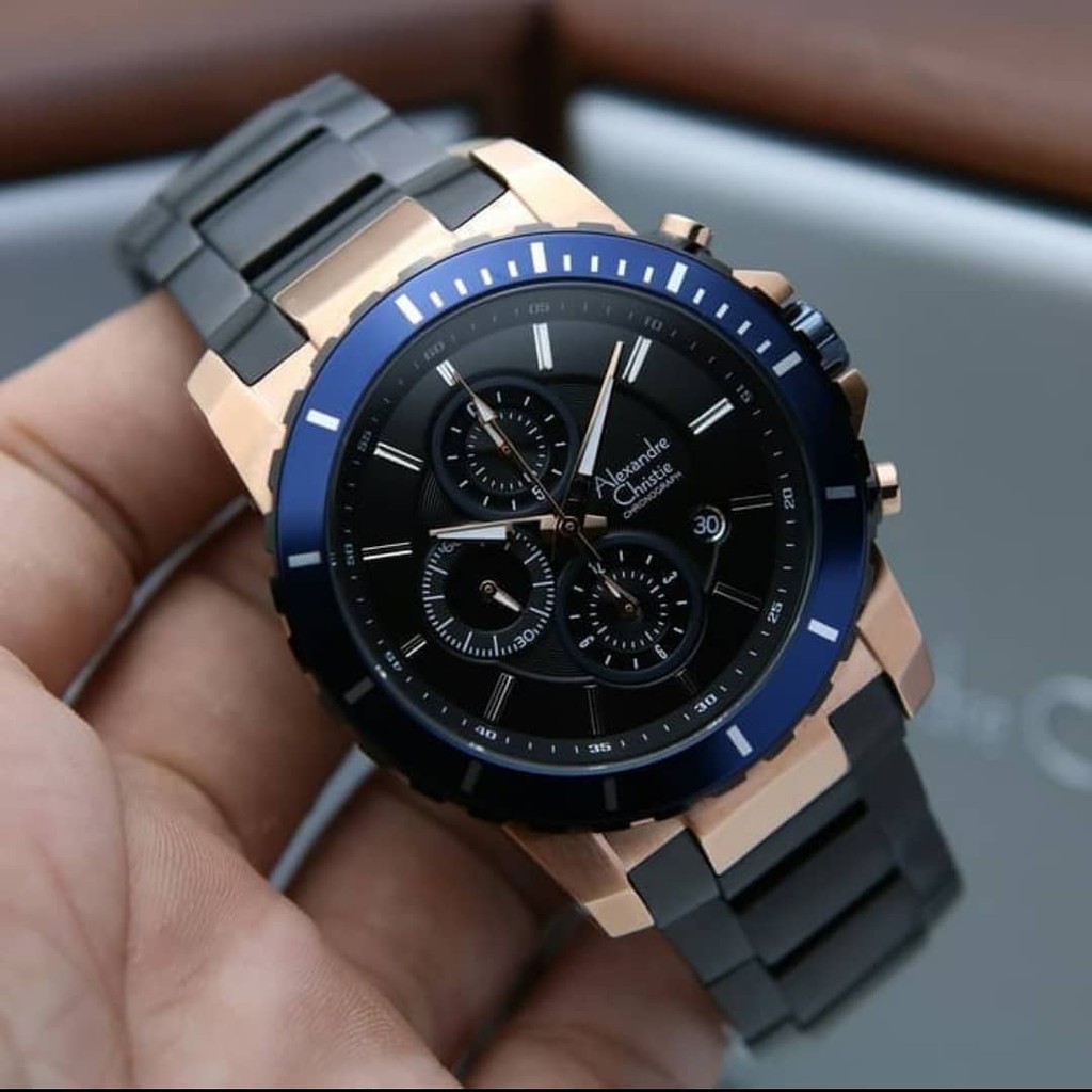 Detail jam tangan pria alexandre christie ac 6141 mc bbrba chronograph black dial stainless steel. Alexandre christie 6141 mcbbrba jam tangan pria black rosegold analog chronograph watch yang memadukan stainless steel case link bracelet dan black dial berdetail time marking. Perpaduan desain klasik dan modern membuatnya sangat istimewa. Dengan tampilan analog body dan rantai jam terbuat dari material stainless steel.