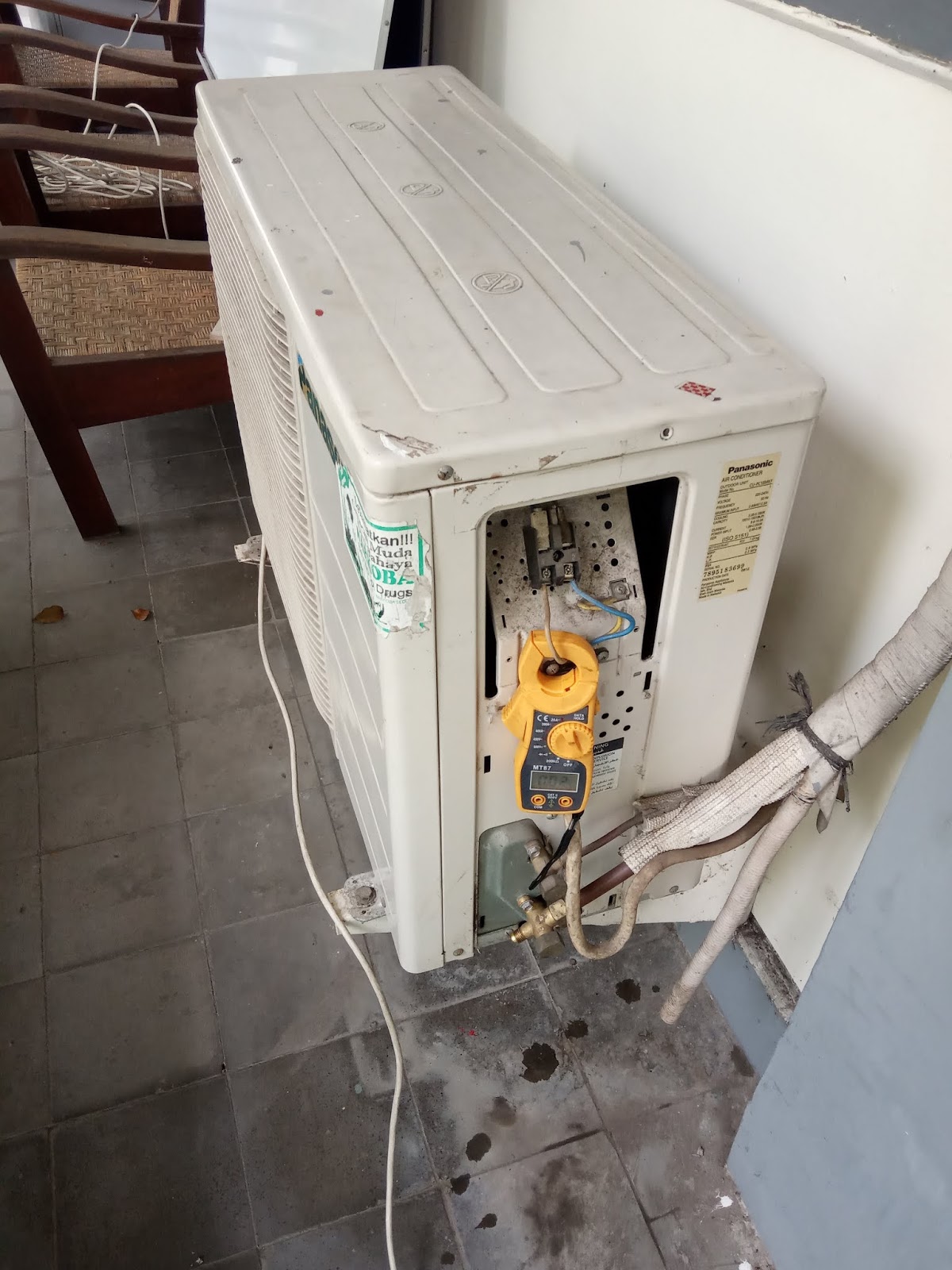 Perbaiki ac panasonic 1 5pk problem ac tidak dingin karena kompresor cepat overload setelah di cek ampere naik 5 5 a sedangkan batas maksimum ampere yg di tentukan 5 a jadi melebihi batas yg di.